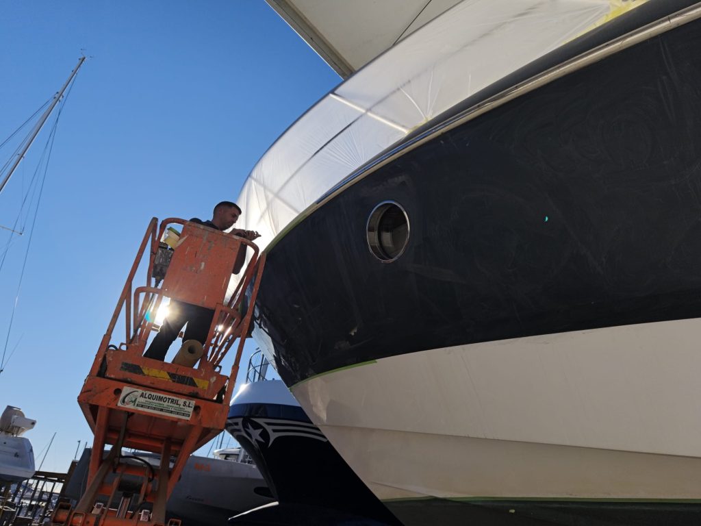 Lijado, imprimación y acabado completo para obra viva y obra muerta. Sistemas duraderos y antiincrustantes pensados para aguas de la Costa Tropical.
